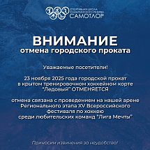 Сообщаем, что 23 ноября 2025 года городской прокат на ледовой арене ОТМЕНЯЕТСЯ.